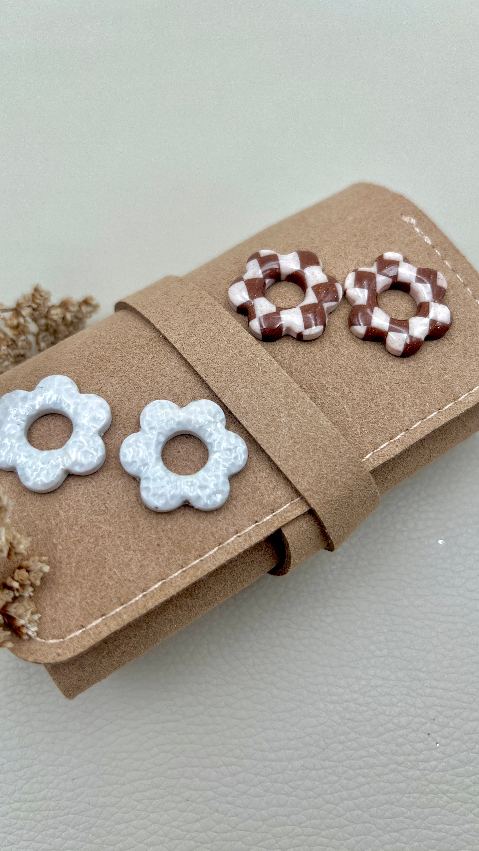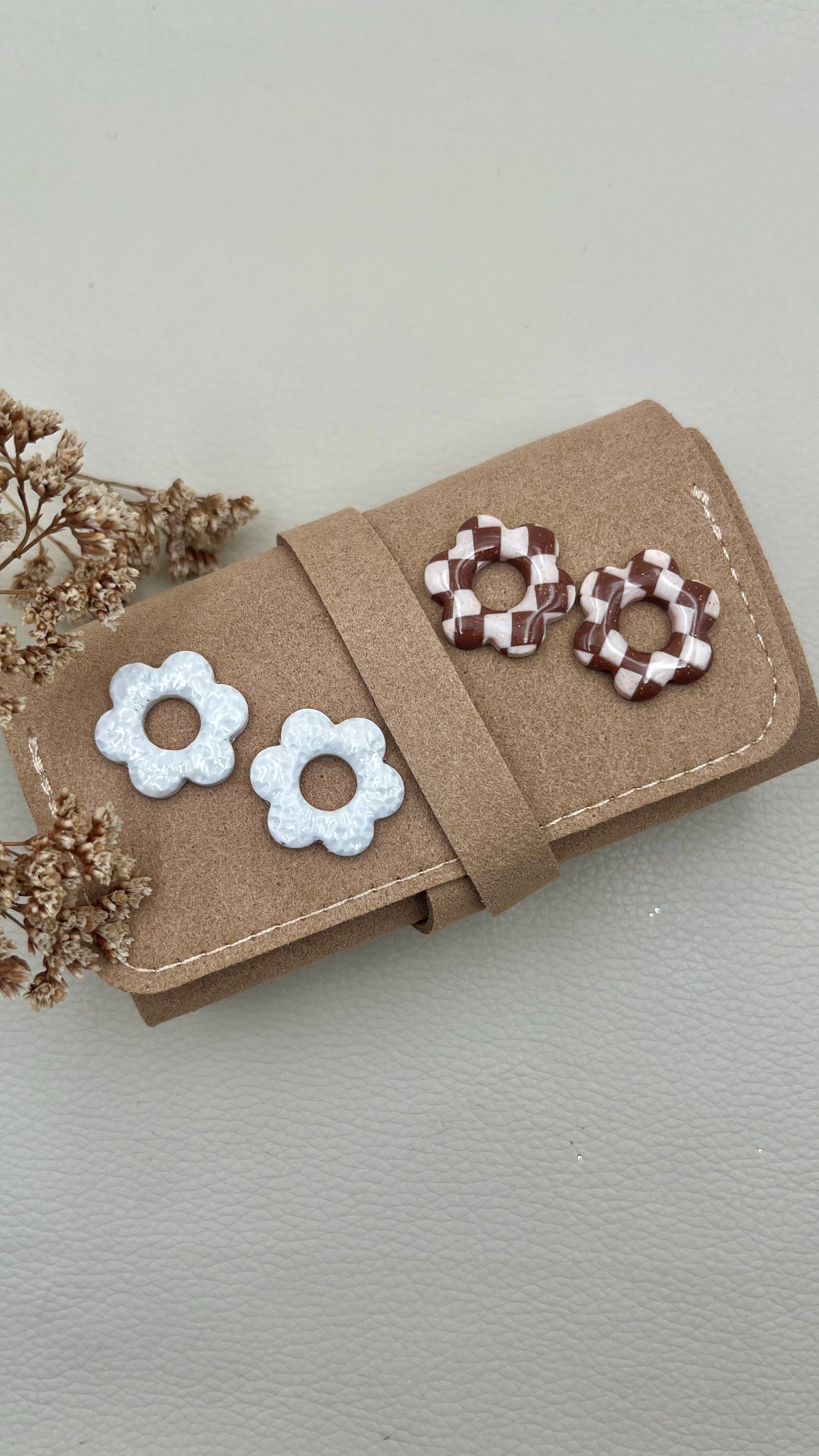 Vous aurez aussi deux paire de pampilles en taille S. Une en damier marron et beige et une martelée blanc cassé.