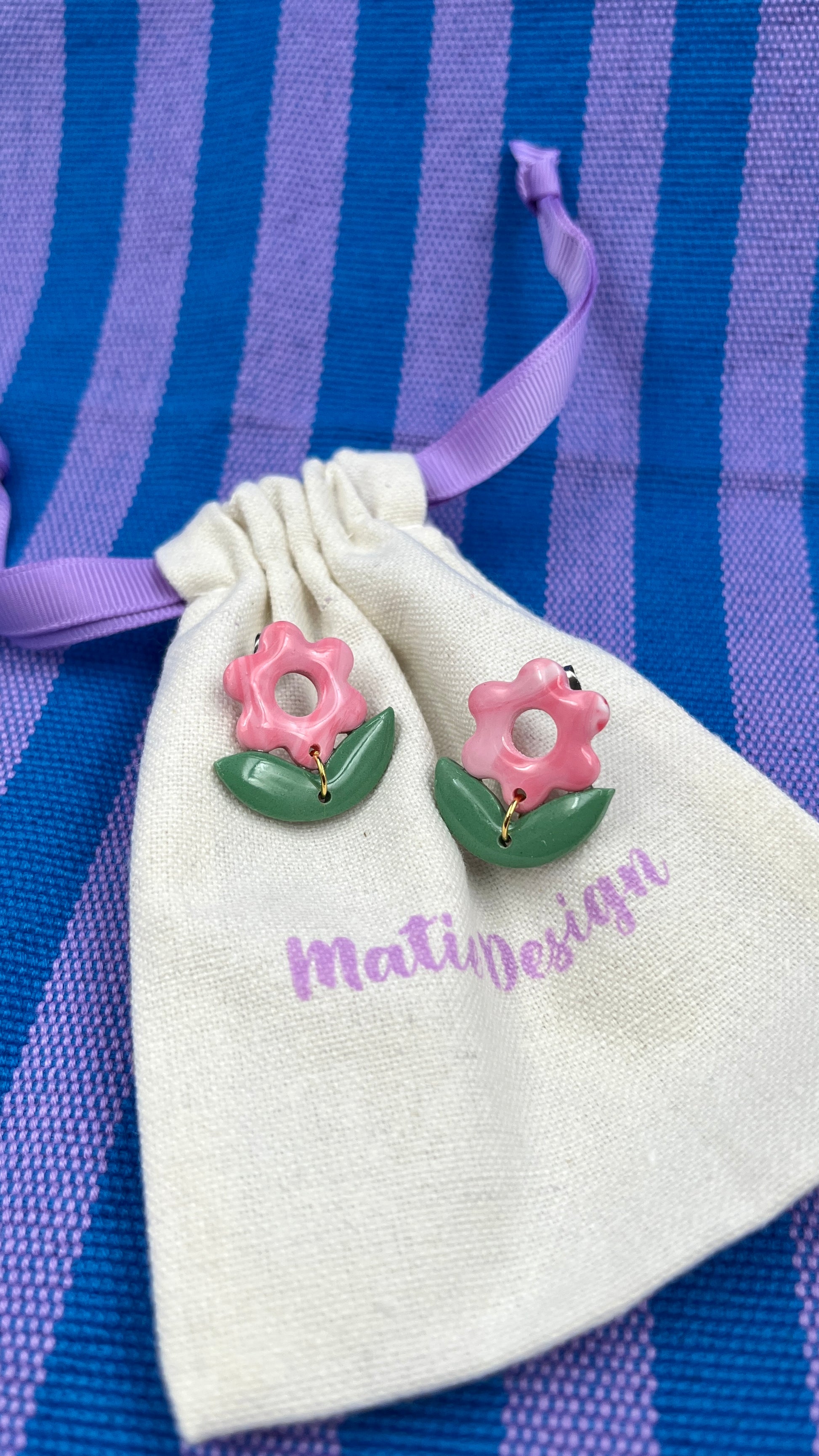 Boucles d’oreilles réalisées à la main en pâte polymère.