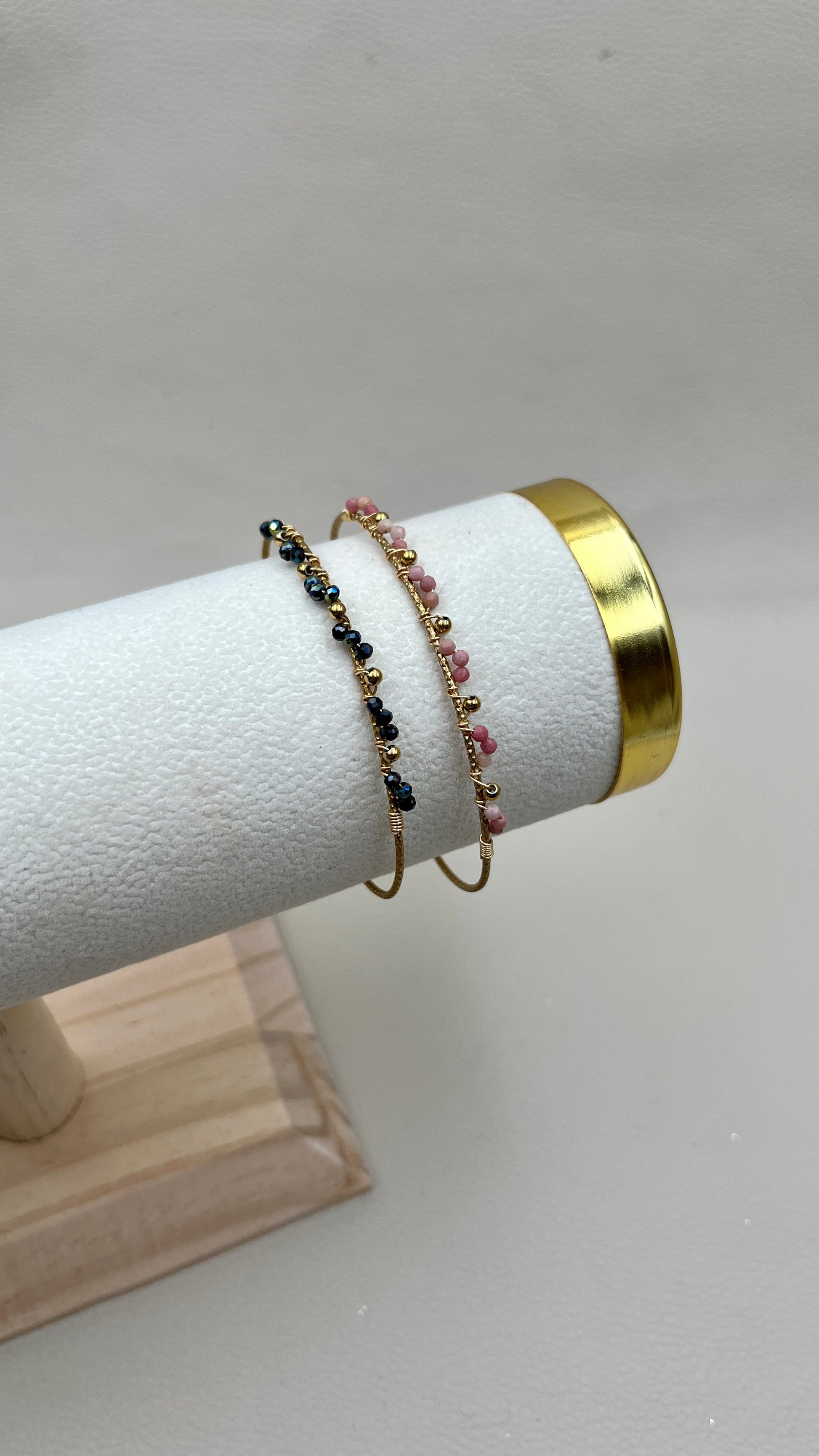 Jonc en acier inoxydable ajustable avec perles naturelles