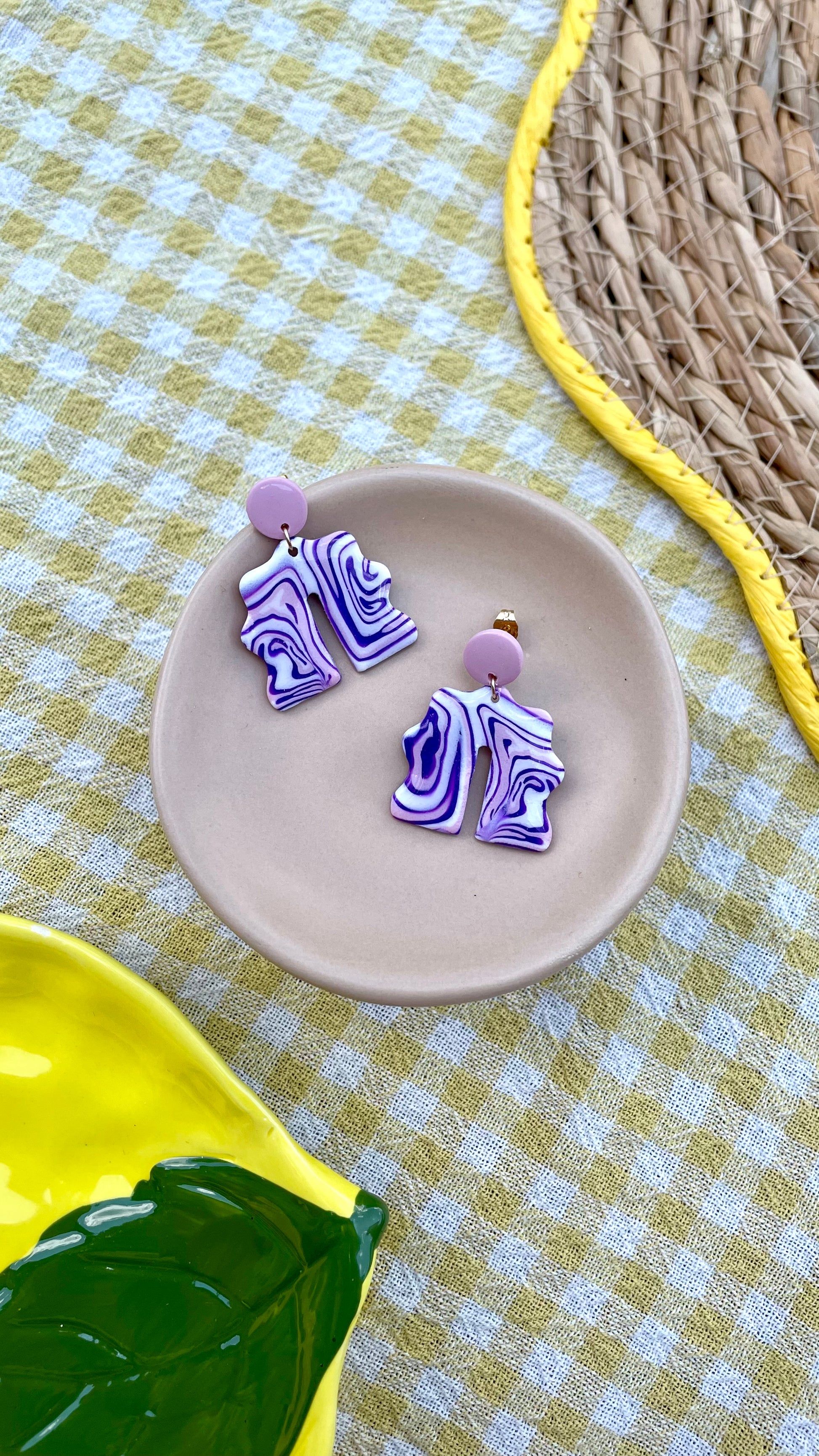 Boucles d’oreilles réalisées à la main en pâte polymère.